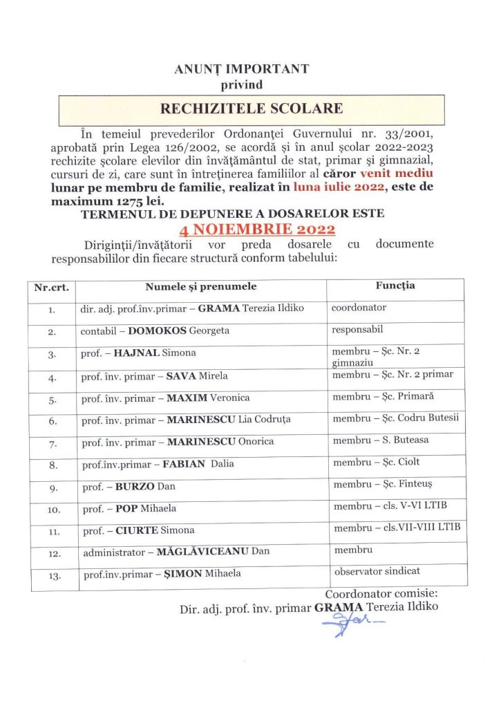 Învățământ Primar / Înscrieri Clasa Pregătitoare